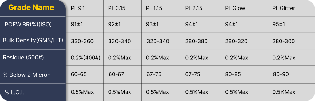 - Ultra-Fine Particle Sizes: Specialized grades with particle sizes below 2 microns for superior performance in demanding applications